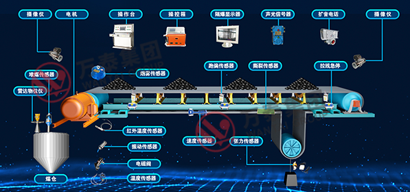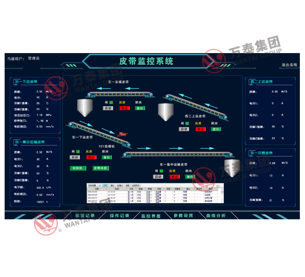 5)系統(tǒng)配有堆煤、跑偏、煙霧、速度、溫度、煤倉煤位、急停閉鎖、縱撕、灑水、斷帶、張力等多項保護;