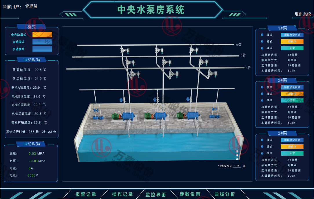 2)每臺(tái)水泵可選擇運(yùn)行、備用、檢修等運(yùn)行模式,從而提升泵房整體運(yùn)行的可靠性和運(yùn)行效率。