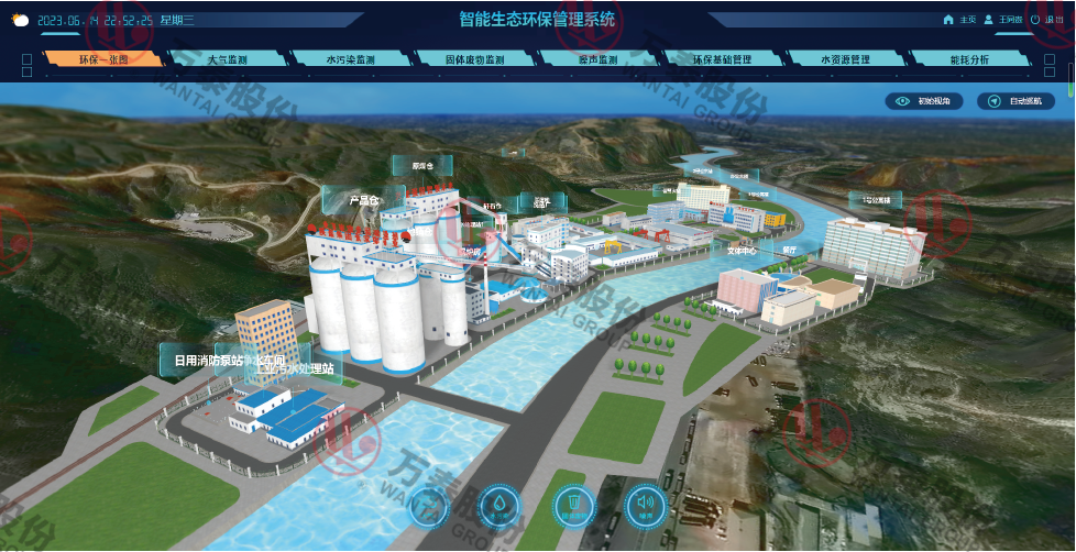 1.環(huán)保一張圖:通過三維模型立體化展現(xiàn)整個礦區(qū)環(huán)境監(jiān)測的空間布局,并將環(huán)保監(jiān)測的各個業(yè)務(wù)及其實時狀態(tài)通過數(shù)字化孿生應用到場景中。支撐了環(huán)保業(yè)務(wù)的綜合決策。