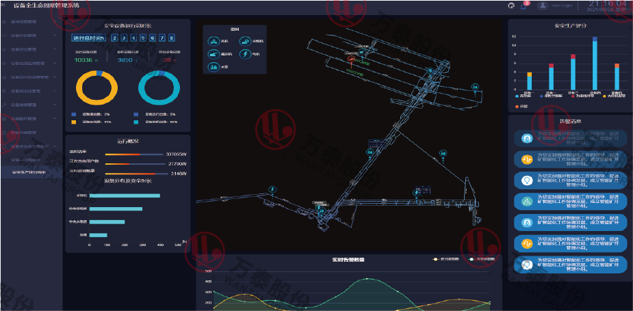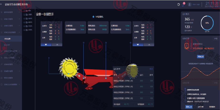 系統(tǒng)以煤礦裝備智能化感知、大數(shù)據(jù)、物聯(lián)網(wǎng)等信息化技術(shù)為支撐,根據(jù)設(shè)備全生命周期和業(yè)務(wù)管理流程特點(diǎn),實(shí)現(xiàn)設(shè)備的采購、出入庫、調(diào)撥、定巡檢、使用、狀態(tài)監(jiān)測、故障診斷、維護(hù)、大修改造,直至報(bào)廢的全生命周期跟蹤管理與服務(wù),實(shí)現(xiàn)設(shè)備在一張圖上的位置服務(wù)、實(shí)時(shí)監(jiān)測和動(dòng)態(tài)跟蹤,達(dá)到井下設(shè)備使用過程可管控、運(yùn)行狀態(tài)透明化、維修服務(wù)主預(yù)防、質(zhì)量問題可追溯的“技術(shù)一張圖,管理一張網(wǎng),服務(wù)一條龍”的新型管理模式,推進(jìn)煤礦設(shè)備管理與服務(wù)信息化。